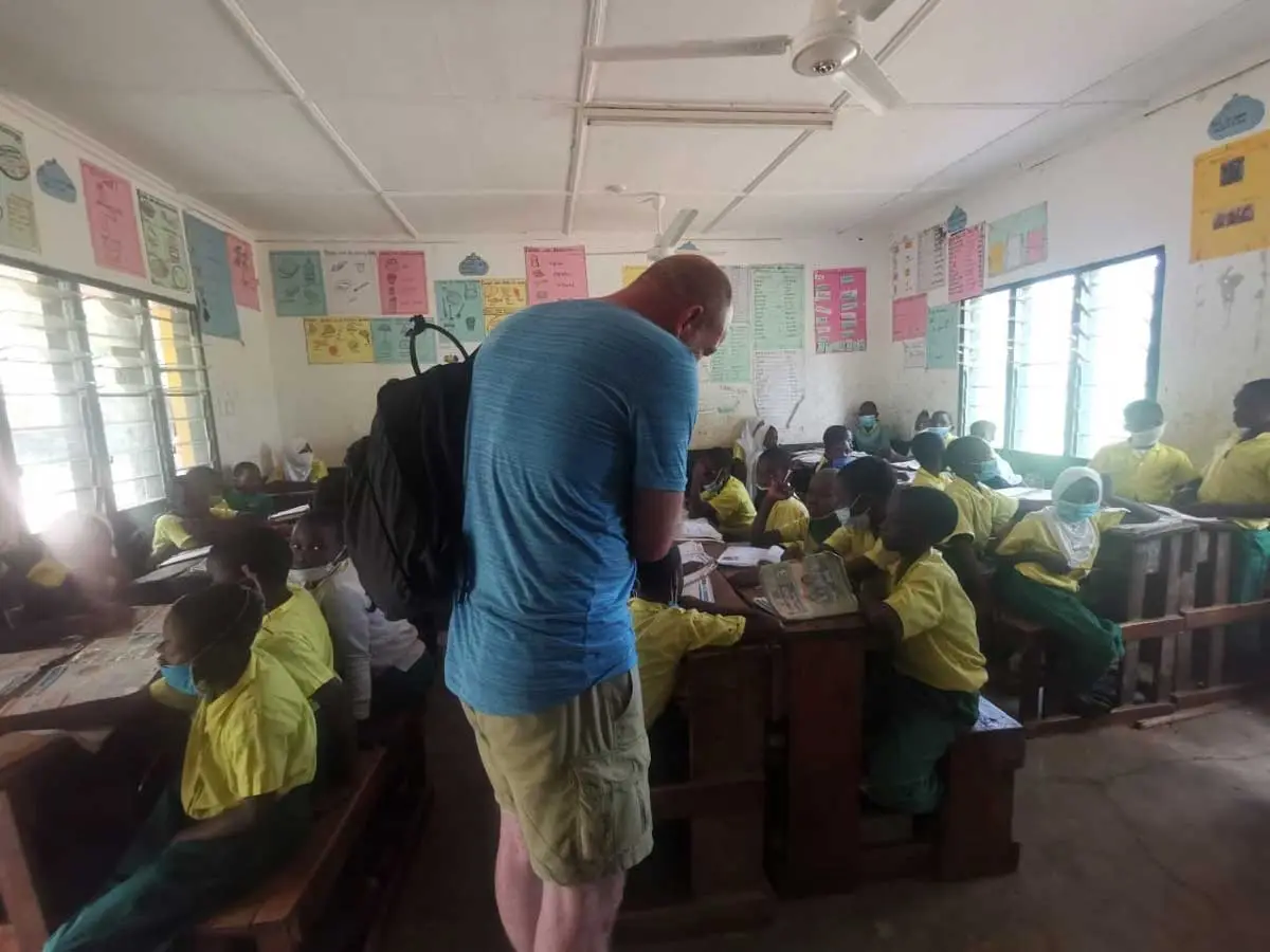 Viola og Salim viste mig rundt i landsbyen og til skolen, der ligger lige ved siden af landsbyen. Og jeg fik en varm og nysgerrig modtagelse. Hvert klasseværelse, jeg besøgte, havde en sang til mig, og det var helt fantastisk at se alle smilene på børnenes ansigter. Selv om de kæmper, f.eks. med lang skolevej, fattigdom, sundhed eller bare noget så simpelt som at få noget at drikke eller spise.