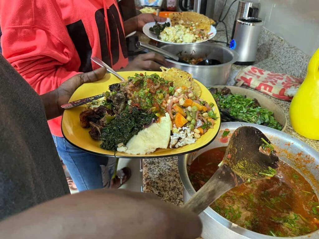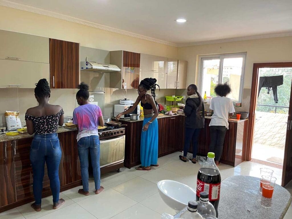 Festen var planlagt til at begynde kl. 14.00. Hele holdet fra Mathare blev imidlertid forsinket. De havde en forestilling senere samme aften. Vi undskyldte dem derfor, fordi de sandsynligvis var ved at øve sig. Jeg var lidt glad for, at de havde forsinket det. Det gav mig en frist med min kokkerering.