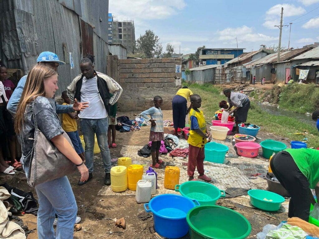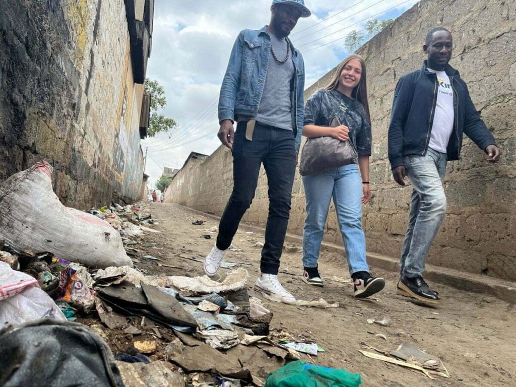 From the entertainment came the Mathare tour for familiarity. Walking around gave her a rainbow of emotions. The smiles and the evident joy that was happily coloring the Mathre slums were breathtaking. Especially, when one saw the looming dark colored nimbus clouds of; the shanties they were compelled to make homes out of, the landmines of garbage that were turned into playgrounds, the polluted river that they were fetching water from; to say that it was saddening will be an understatement.