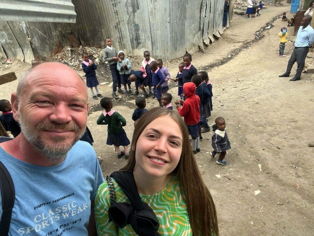 The second day began at 10 am. After a short meeting, the headquarters Laerke was taken to one of the most underserved schools. She was told that it was a school for poorer kids. There was no specific school uniform, whatever the parents could afford. It was one big hall made from mud. The classes are separated by sacks that work as curtains. The pupils sharing the desks were happy to see her.
