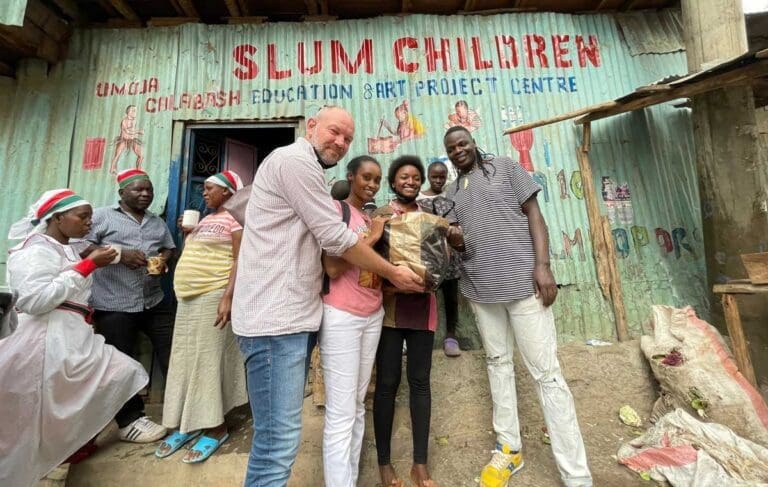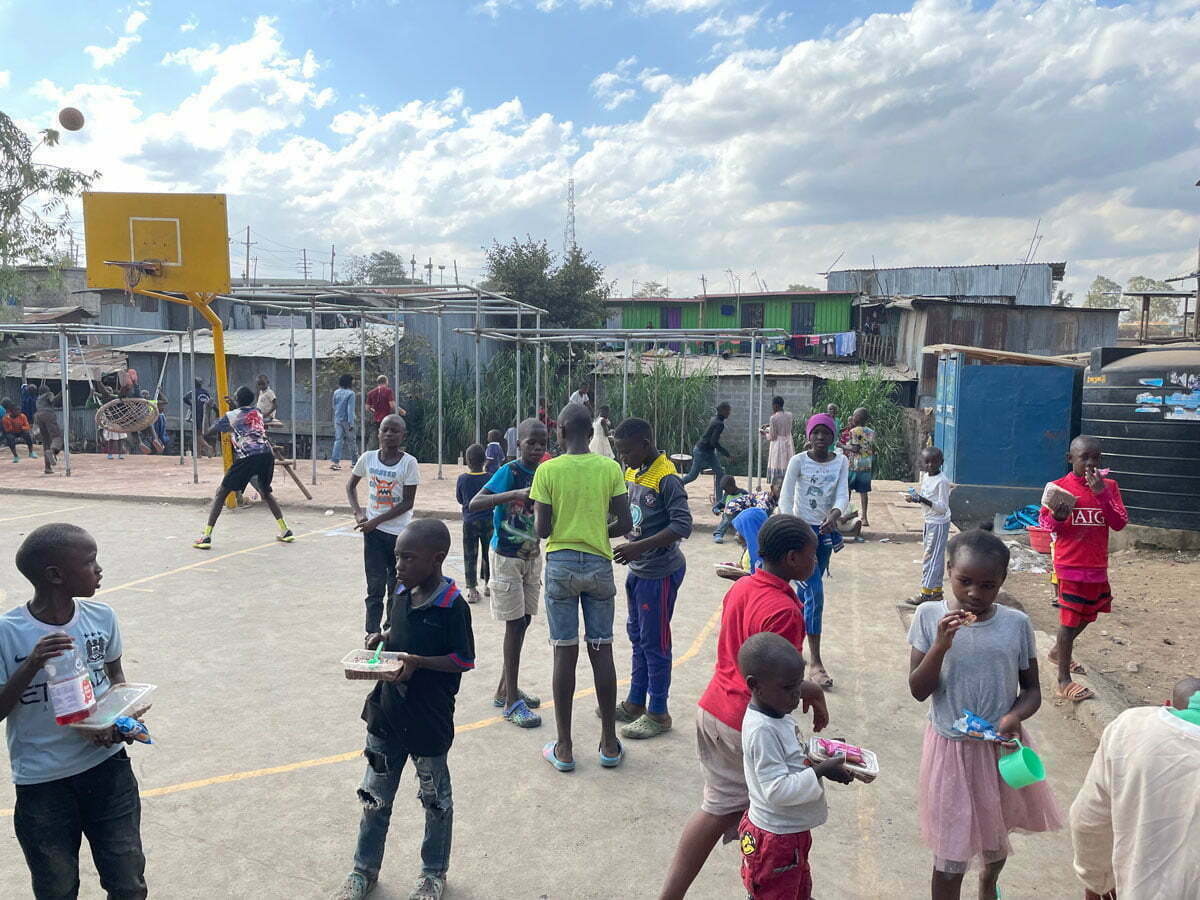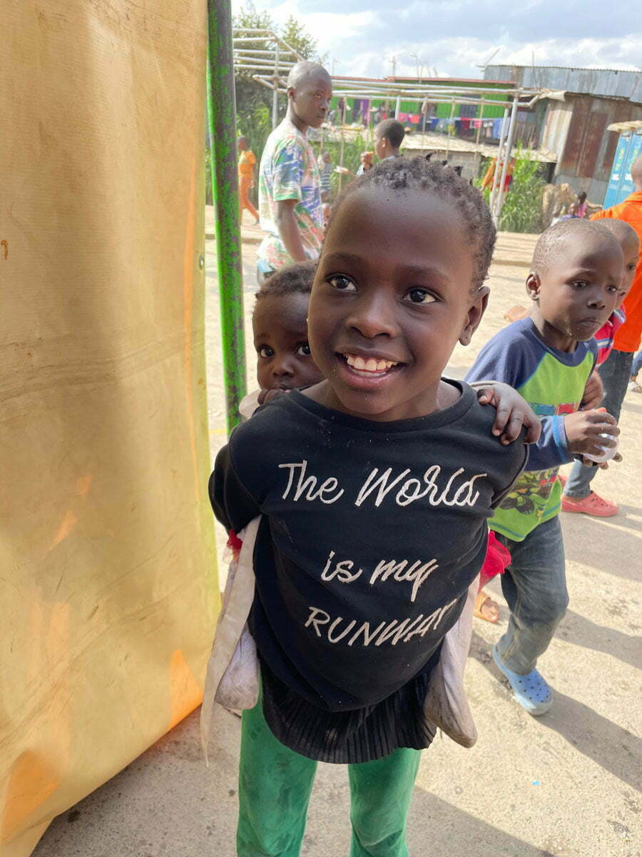 In October 2021 I went to Mathare slums to hand out food for the kids. There were even second-hand clothes as well. And as you can see in the pictures below, so that the clothes were given with the hope that the kid grows a bit 🙂
